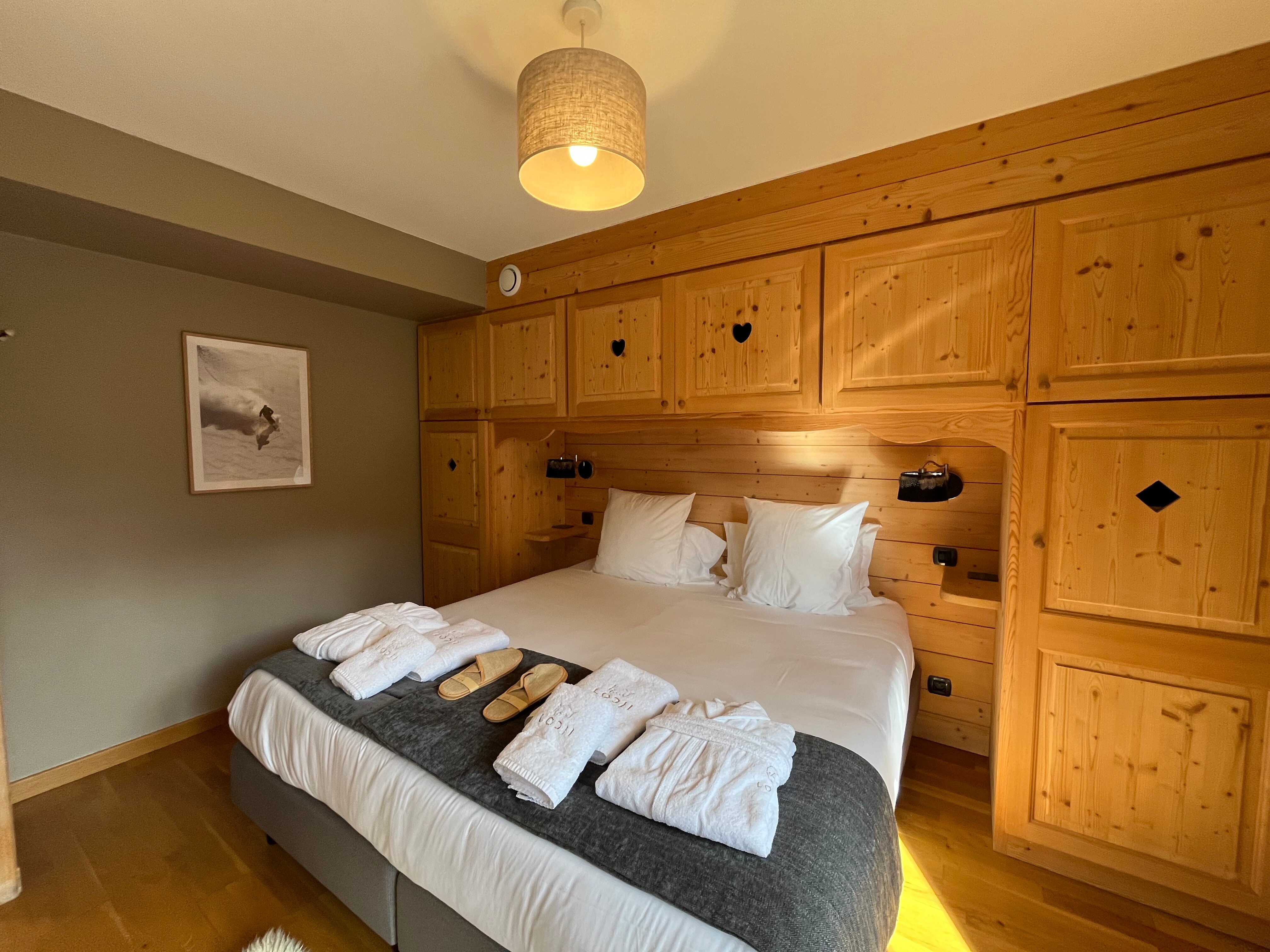 Ce duplex de 143 m² dispose de quatre chambres, 2 chambres avec un lit double (ou lits jumeaux) et un lit corniche, une chambre avec un lit double, une chambre avec 2 lits superposés; 3 salles de bain, dont 2 salles de bain avec douche et une salle de bain avec douche et baignoire ainsi que 2 agréables terrasses de 65 m² au total.