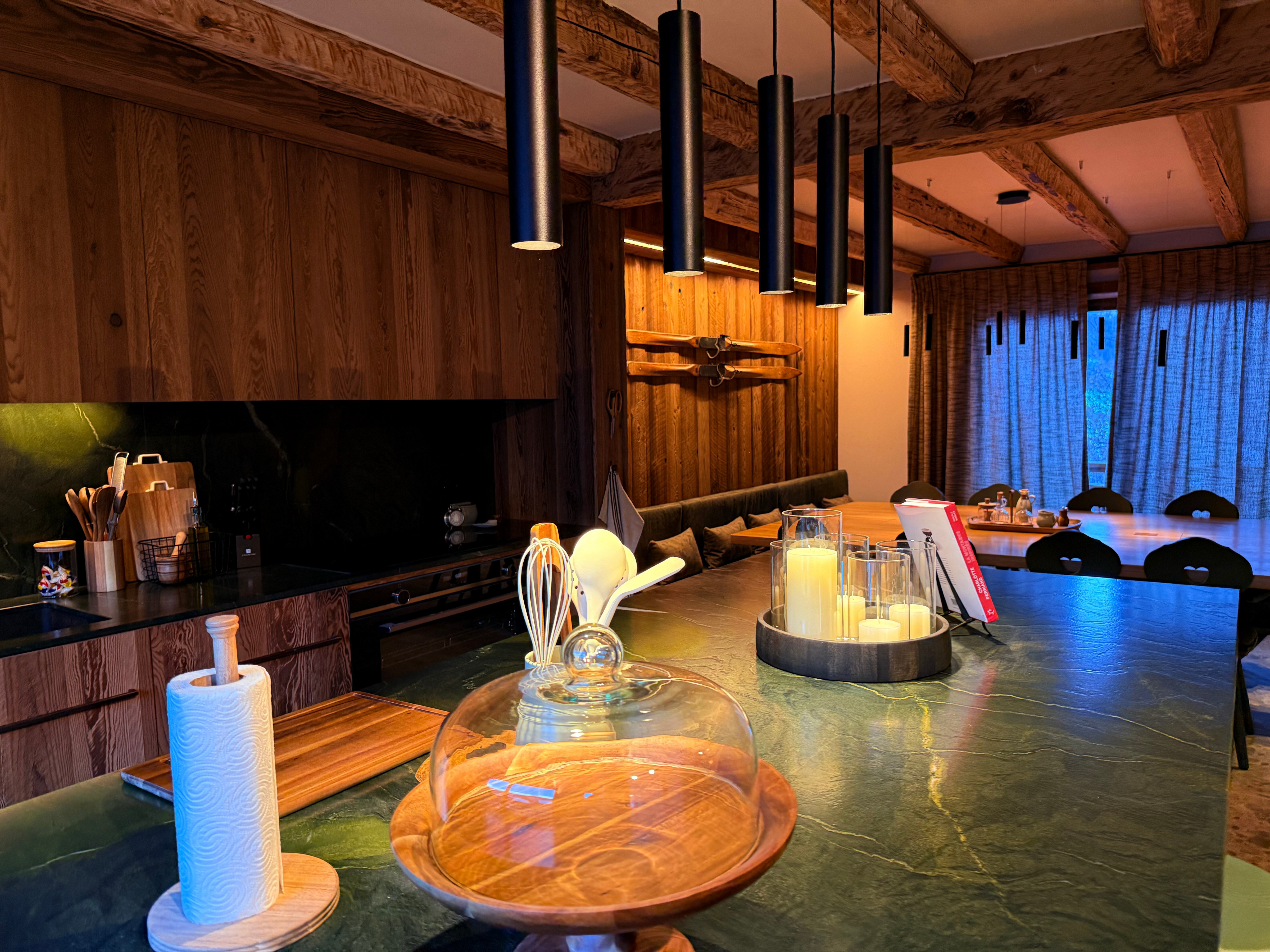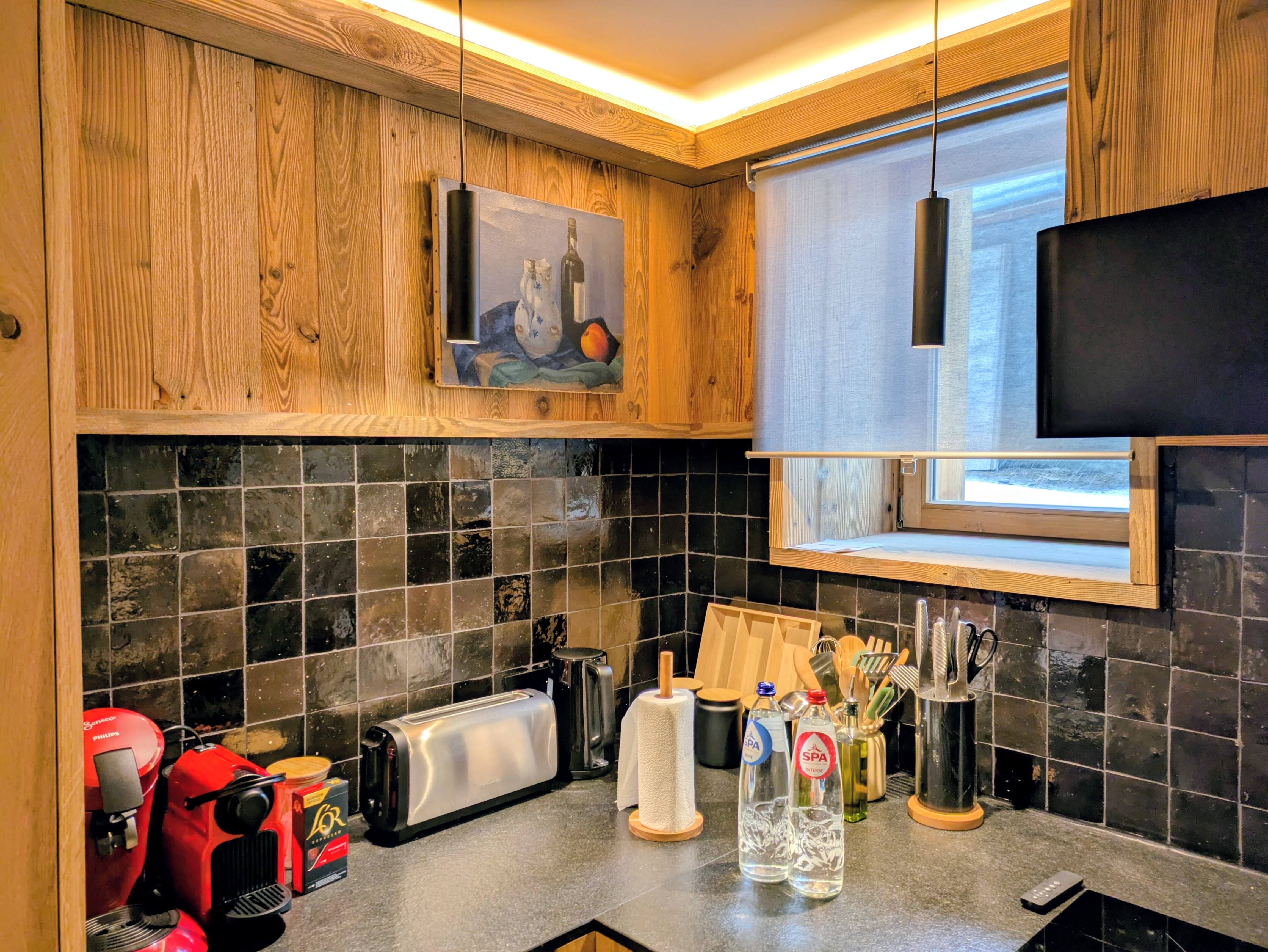 Volledig ingerichte keuken met royaal servies en Savoyaardse apparatuur (raclette, fondue, pierrade)