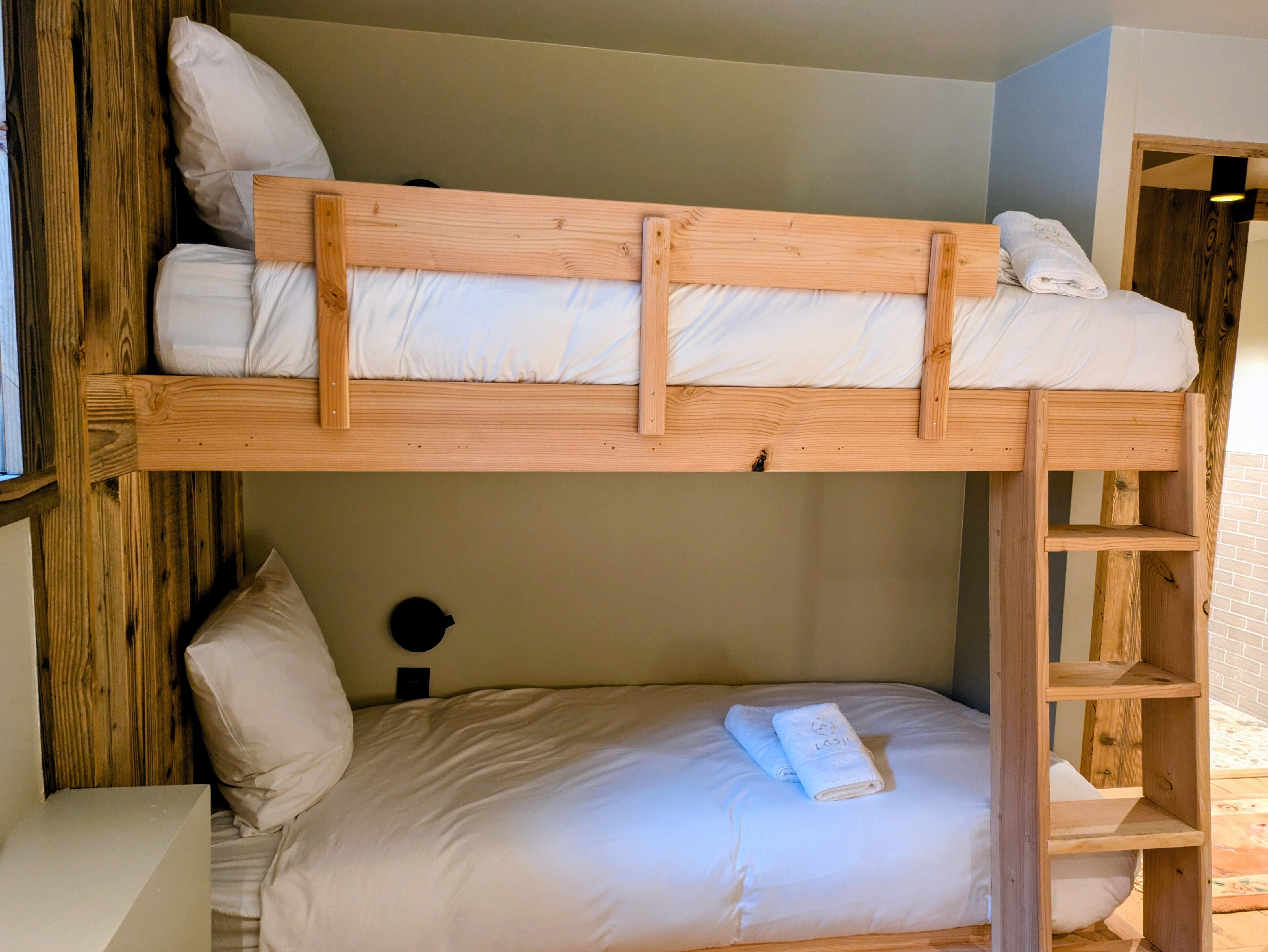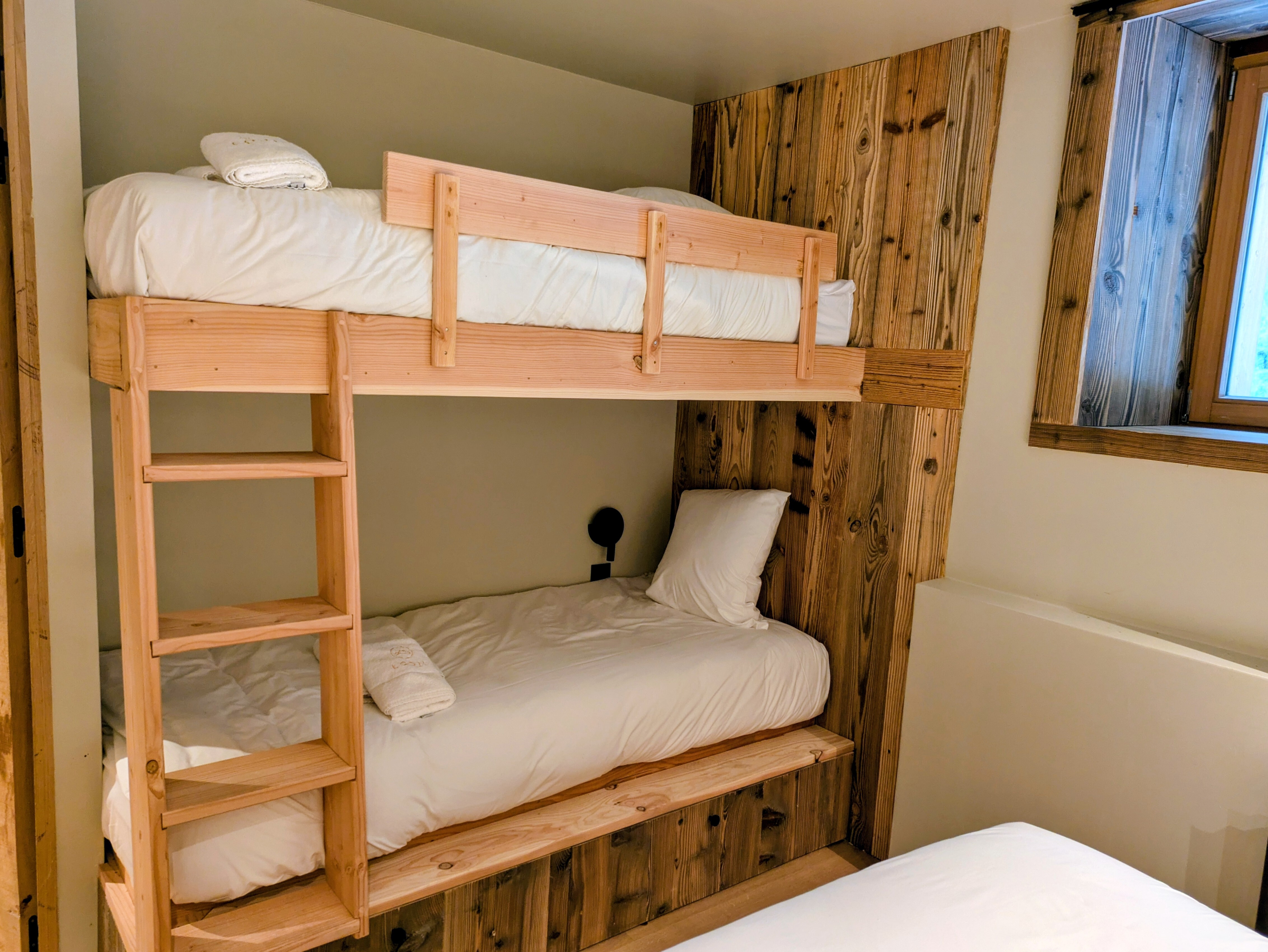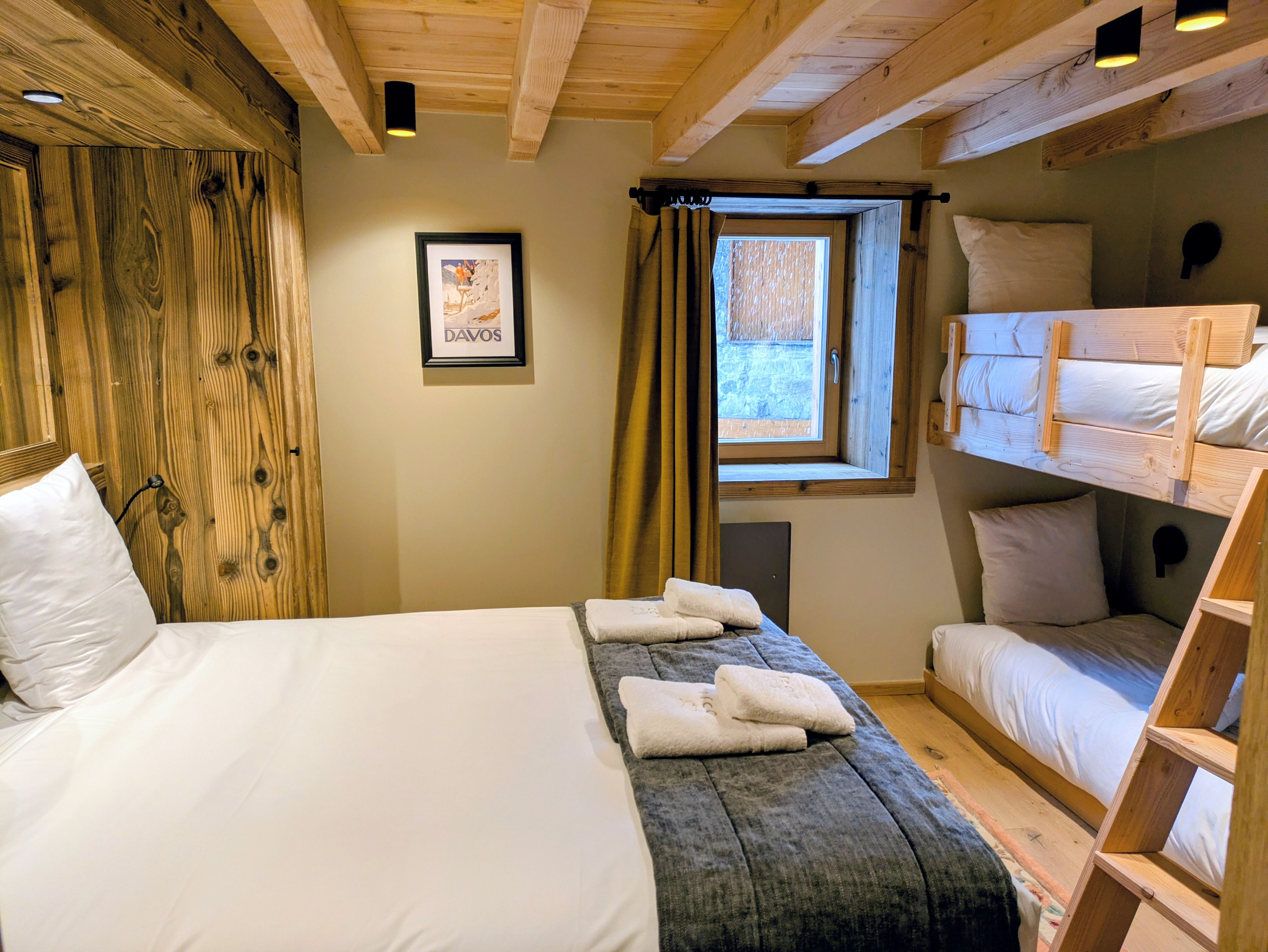 Slaapkamer 4: tweepersoons stapelbed, doucheruimte, WC, uitzicht op het dorp