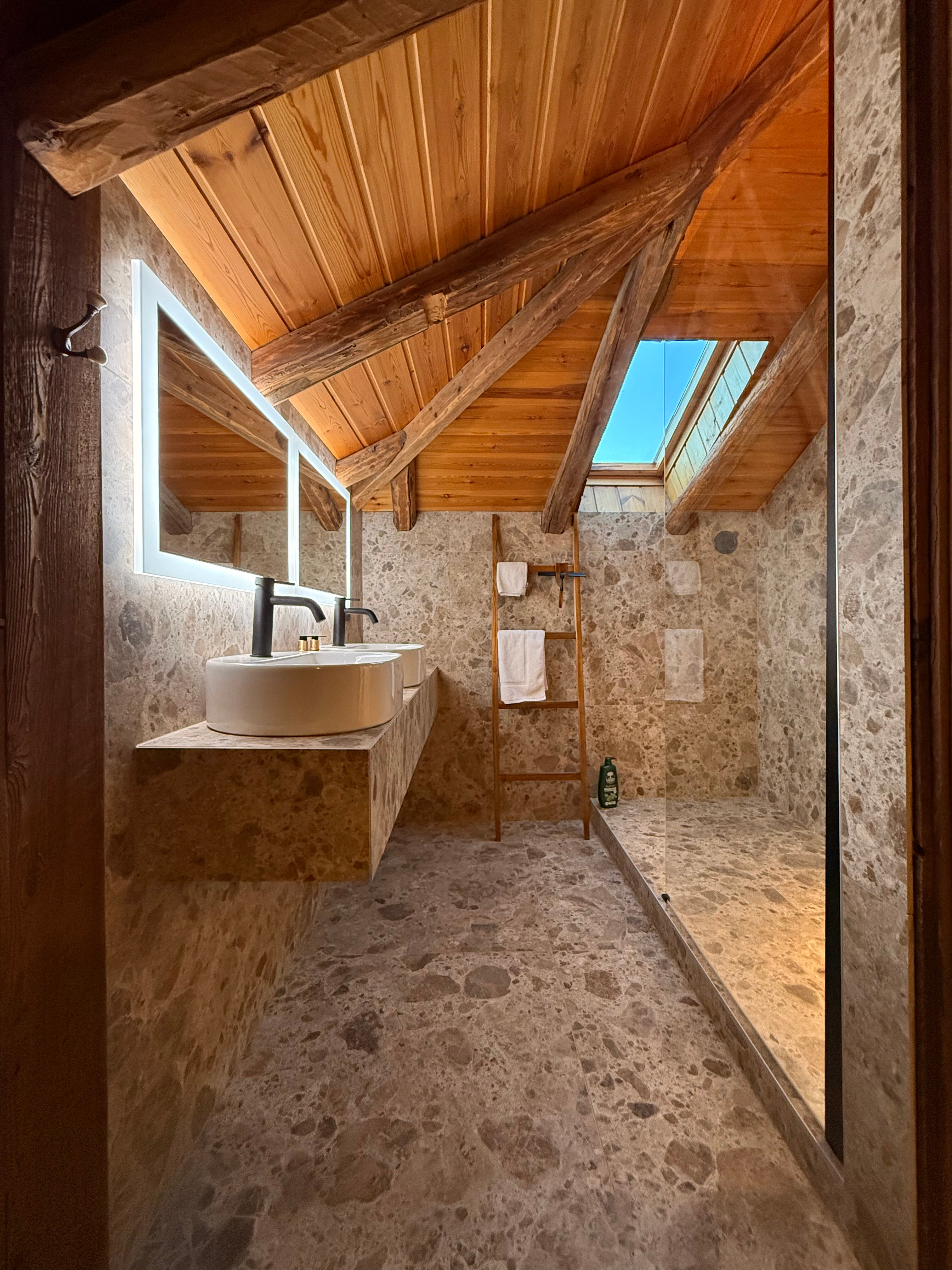 Badkamer met eilandbad, douche en WC